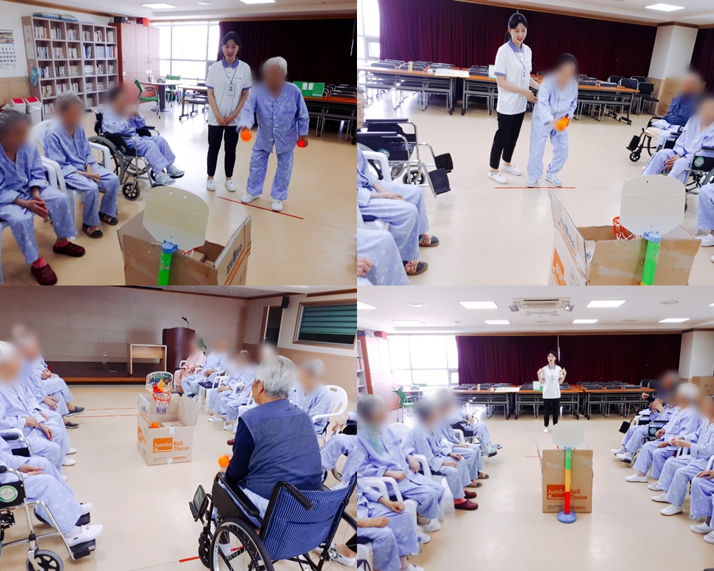 오늘은 어르신들께서 모두 큰 실수 없이 농구대에 농구를 아주 잘 넣으셨으며