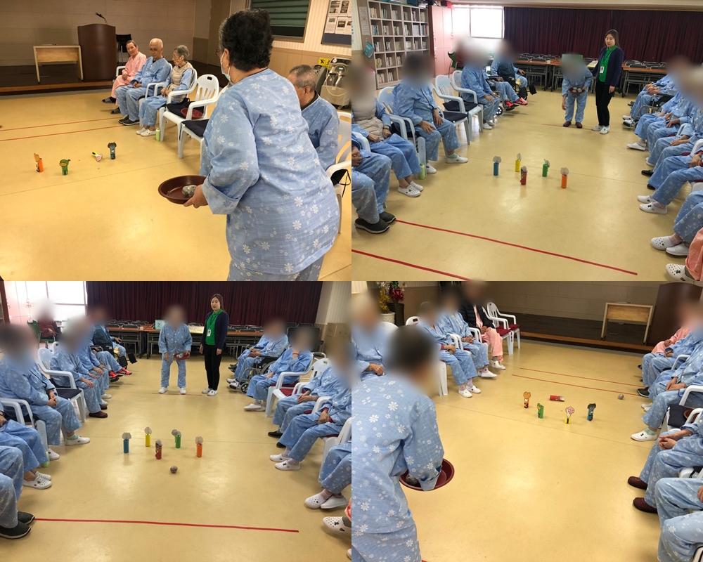 치료레크리에이션 - 동물 맞추기 본문 2019년 04월 01일 (월) 오늘은 치료레크리에이션으로 동물 맞추기를 하였습니다. 어르신들 서로서로 잘하는 방법을 공유하시며 적극적으로 참여 할 수 있도록 하셨고모두 게임을 즐기며 좋아하셨습니다 ! 이전글 목록 다음글