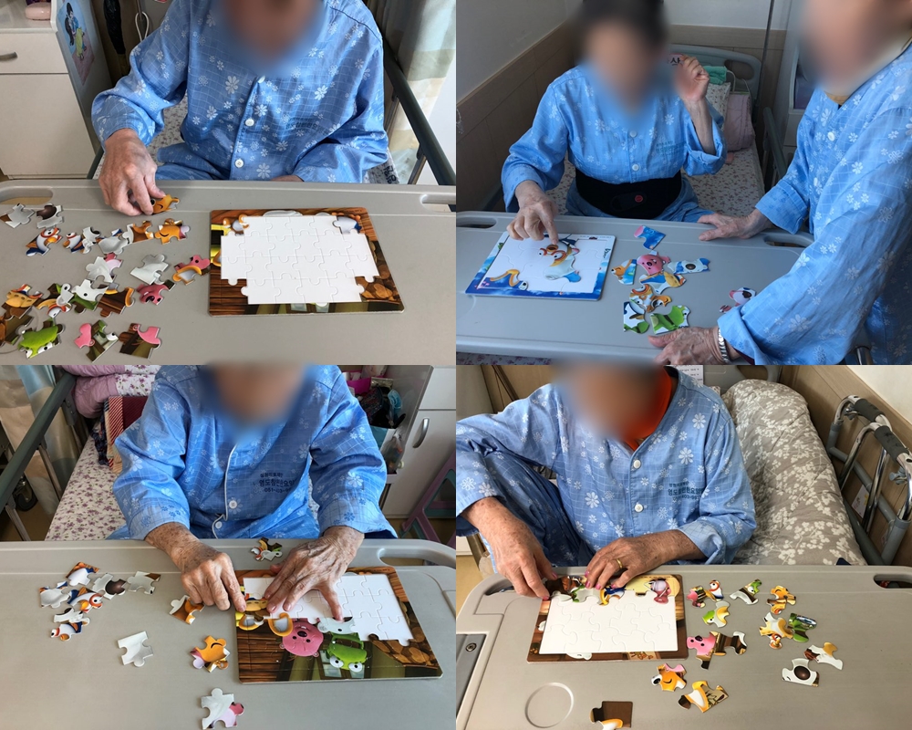 2019년 04월 15일 (월) 오늘은 인지치료로 퍼즐 맞추기를 하였습니다.