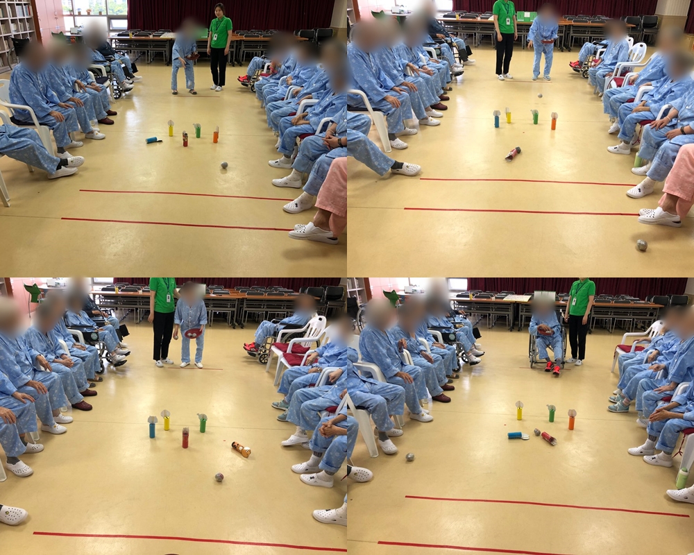 치료레크리에이션 - 동물 맞추기 본문 2019년 07월 08일 (월) 오늘은 치료레크리에이션으로 동물 맞추기를 하였습니다. 오늘은 힘차게 공을 굴려 동물 핀을 모두다 쓰러뜨리는 어르신들이 많으셨습니다 !! 크게 웃으며 재미있게 참여하셨습니다 !! 이전글 목록 다음글
