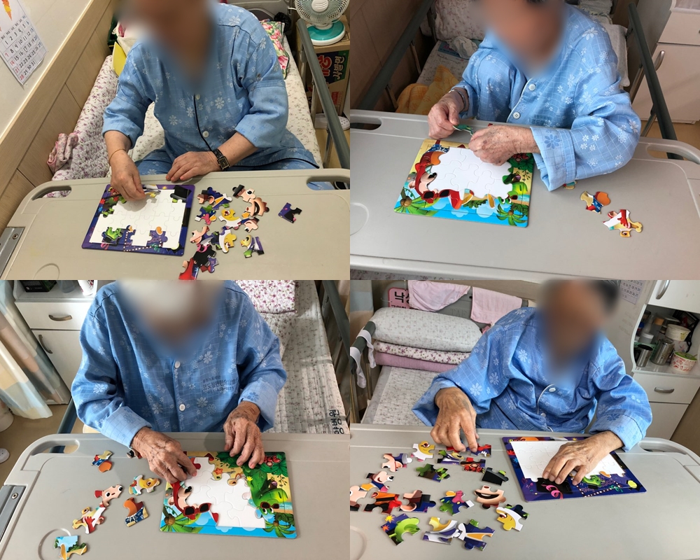 인지치료 - 퍼즐 본문 2019년 07월 25일 인지치료로 퍼즐 맞추기를 하였습니다. 오랜만에 하는 퍼즐 맞추기를 걱정도 하셨지만 관심을 보이며 좋아하셨습니다 ^^ 퍼즐 조각이 맞춰지는 것을 신기해 하셨고 재미있어 하셨습니다~ 이전글 목록 다음글