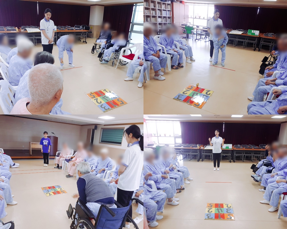 치료레크리에이션 - 오자미 던지기 본문 2019년 08월 12일 (월) 오늘은 치료레크리에이션으로 오자미 던지기를 하였습니다. 어르신들께서는 가장 높은 점수인 5가 있는 숫자판에 던지고 싶어하셨지만 잘 되지 않자 0점이 아닌게 어디냐며 열심히하자는 반응을 보이셨습니다~~ 이전글 목록 다음글