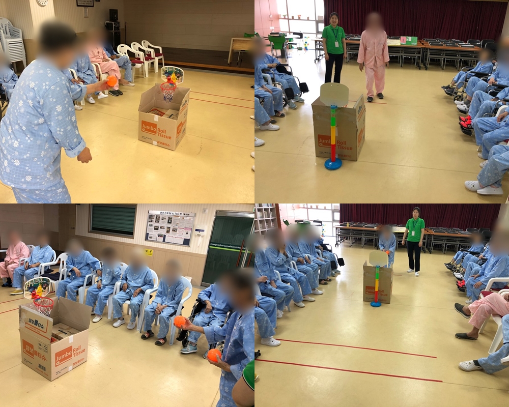 치료레크리에이션 - 농구 본문 2019년 8월 19일 (월) 오늘은 치료레크리에이션으로 농구를 하였습니다. 공을 많이 넣을수록 웃음소리도 더욱 커졌고 서로 응원하며 활기찬 게임이었습니다!!! 어르신들께서 오늘 즐거웠다며 좋아하셨습니다 ^^ 이전글 목록 다음글