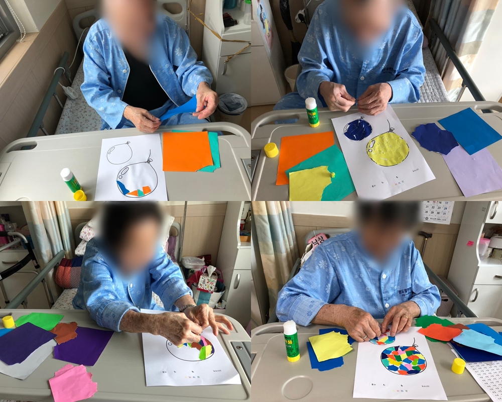 미술치료 - 모자이크 본문 2019년 08월 20일 (화) 오늘은 미술치료로 모자이크를 하였습니다. 다양한 색을 이용하여 알록달록 예쁜 풍선을 만들었으며 찢고 붙이는 재미가 있다며 좋아하셨습니다 ^^ 이전글 목록 다음글