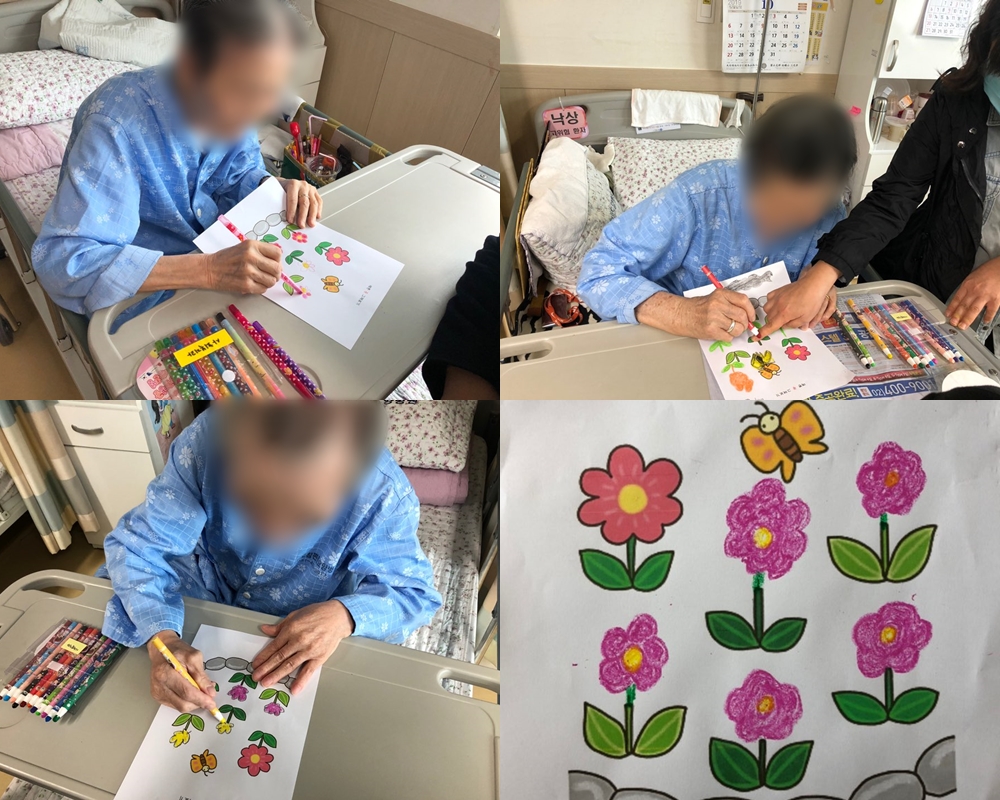 미술치료 - 상상 그리기 본문 2019년 10월 24일 (목) 오늘은 미술치료로 상상 그리기를 하였습니다. 어떻게 그리면 예쁜 꽃이 될지 어르신들께서 신중하셨고 여러가지 색을 이용해 예쁜 꽃을 그렸습니다 ^^ 이전글 목록 다음글