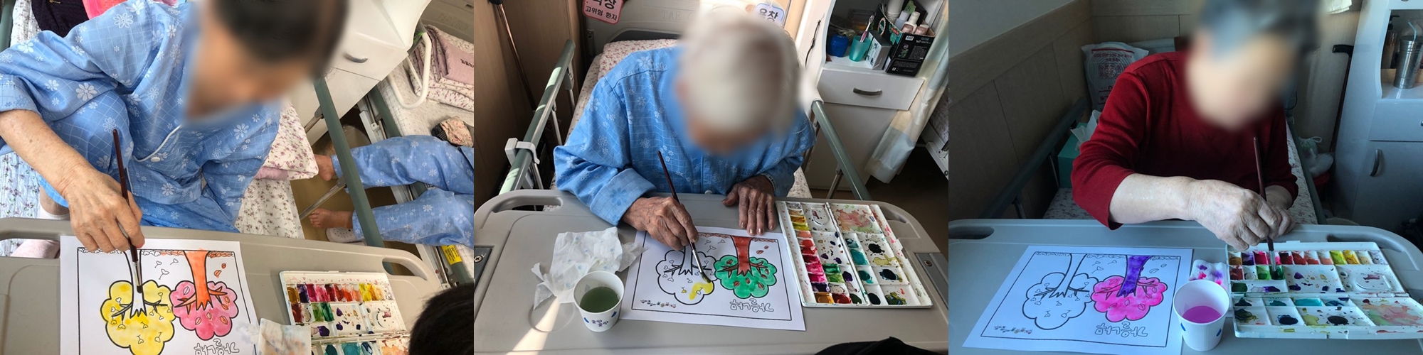 미술치료 - 수채화 본문 2019년 11월 12일 (화) 오늘은 미술치료로 수채화를 하였습니다. 오랜만에 붓으로 색칠하는 것이라 어르신들께서 들뜬 모습을 보이셨고 어떤 나무로 색칠하면 좋을지 오랫동안 고민하시며 신중한 모습을 보이셨습니다 ^^ 이전글 목록 다음글