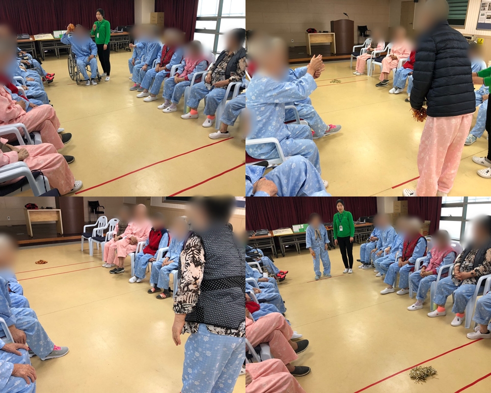 치료레크리에이션 - 제기 던지기 본문 2019년 02월 18일 (월) 오늘은 치료레크리에이션으로 제기 던지기를 하였습니다. 어르신들께서 서로 응원하며 조언도 해주시며 협력하며 게임을 이끌어 나가셨습니다 ~ 웃음도 많고 에너지도 밝으며 어르신들 모두 즐겁게 참여하셨습니다 ^^ 이전글 목록 다음글