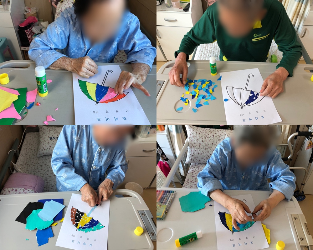 알록달록 예쁘게 우산이 완성되는 것을 보고 활짝 웃으시며 "우산 써야겠다" 농담도 하시며 즐겁게 하셨습니다~~ *^^*