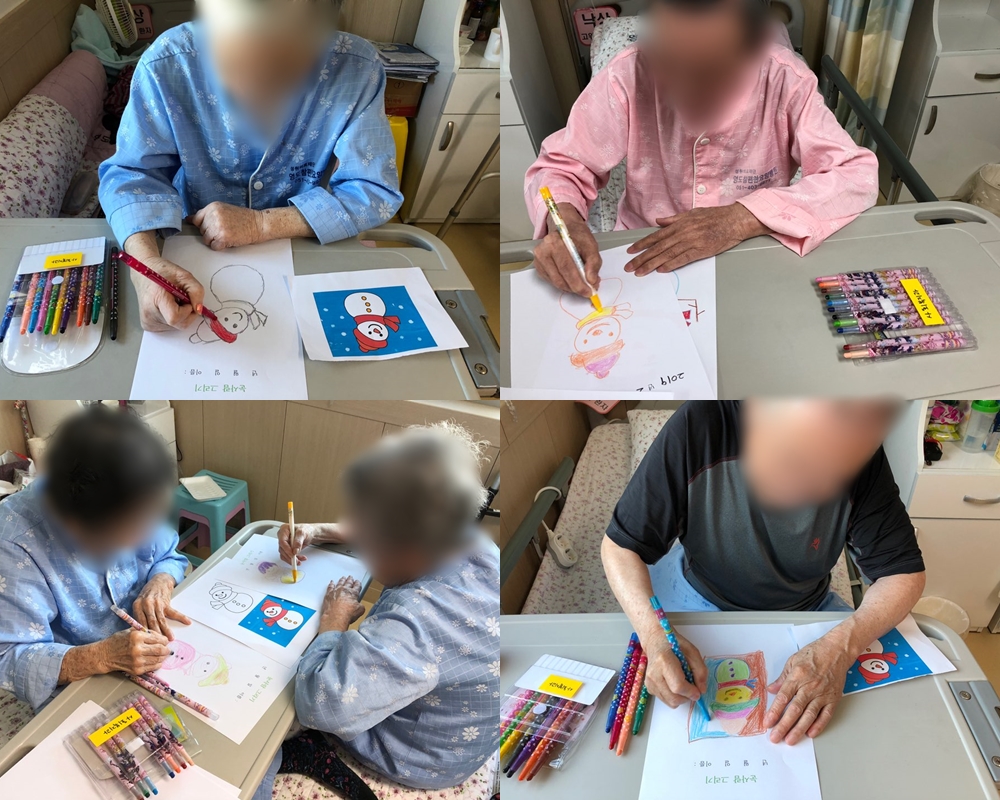 미술치료 - 눈사람 그리기 본문 2019년 02월 11일 (월) 오늘은 미술치료로 눈사람 그리기를 하였습니다. 어르신들께서 눈사람 그림 도안을 유심히 보시며 집중하여 열심히 따라 그리셨습니다 !다양하게 색을 입혀 예쁜 눈사람을 완성하였고 어르신들께서 직접 그리고 색칠까지 다 하는 것이라 어렵다고 느낄 수 있었지만 그림그리는 것을 기대하는 모습을 보이셨습니다 ^^ 이전글 목록 다음글