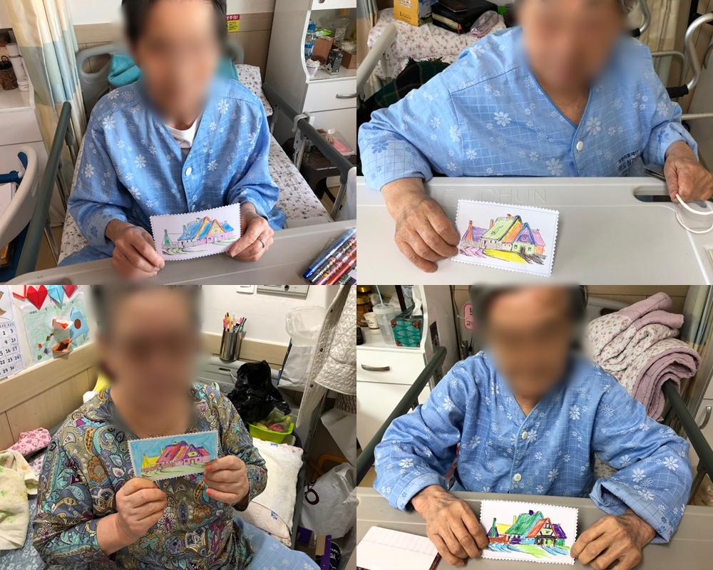 미술치료 - 우표 만들기 본문 2018년 11월 28일 (수) 오늘은 미술치료로 우표 만들기를 하였습니다. 어르신들께서 알록달록 예쁜 색상으로 그림을 색칠하며 예쁘다고 좋아하셨습니다 ~~~~ 희한하게 생겼다며 핑킹가위를 신기해하시며 톱니모양으로 종이가 오려지는 것을 보고 웃으셨습니다~~~*^^* 이전글 목록 다음글