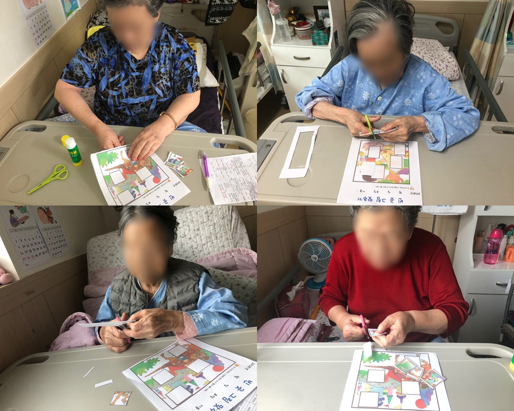인지치료 - 빈 곳 그림 맞추기 본문 2018년 10월 22일 (월) 오늘은 인지치료로 빈 곳 그림 맞추기를 하였습니다. 어르신 모두 즐거워하시며 즐겁게 참여했습니다~~~ 그림을 맞추는 것에는 어려워했으나 도움을 드리니 모두 다 잘하시며 그림을 완성했습니다~~ ^^ 이전글 목록 다음글