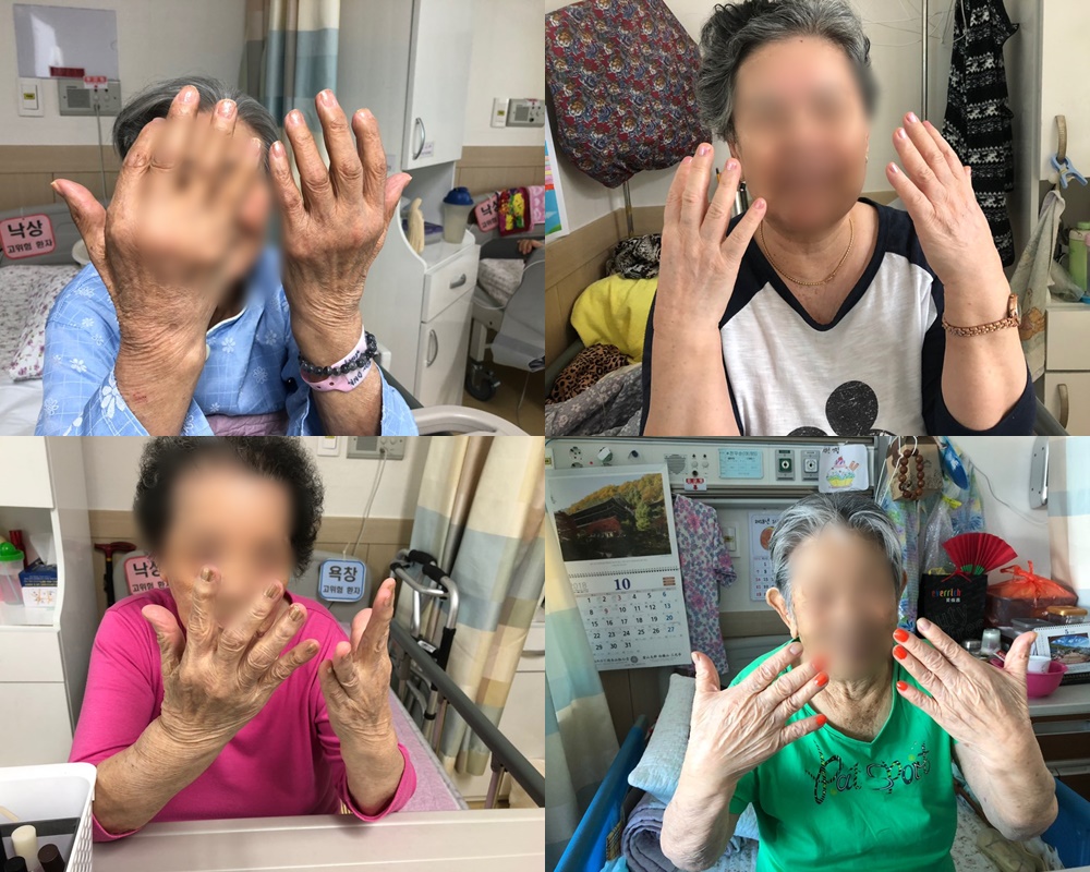미용프로그램 - 손 얼굴 마사지 본문 2018년 10월 24일 (수) 오늘은 미용프로그램으로 손·얼굴 마사지를 하였습니다. 매니큐어 색이 곱다며 어르신들께서 좋아하셨으며 특히 반짝이 매니큐어를 좋아하셨고 화기애애하게 다들 매니큐어를 바르며 예쁜 손톱을 뽐내셨습니다~~~~~ 이전글 목록 다음글