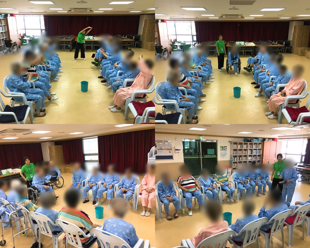 치료레크리에이션 - 신문지 공 넣기 본문 2018년 8월 21일 (화) 오늘은 치료레크리에이션으로 신문지 공 넣기를 하였습니다. 어르신들 서로 큰 환호와 박수를 치며 즐겁게 게임을 마쳤습니다~~^^ 이전글 목록 다음글