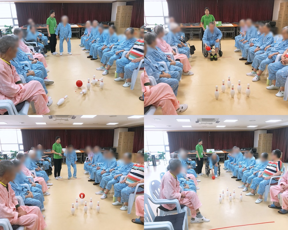 치료레크리에이션-볼링 본문 2018년 9월 17일 (월) 오늘은 치료레크리에이션으로 볼링을 하였습니다. 지금까지 쌓아온 실력으로 볼링공을 쉽게 쓰러트리며 모두들 즐거운 마음으로 게임에 참여하셨습니다~~~ ^^ 이전글 목록 다음글