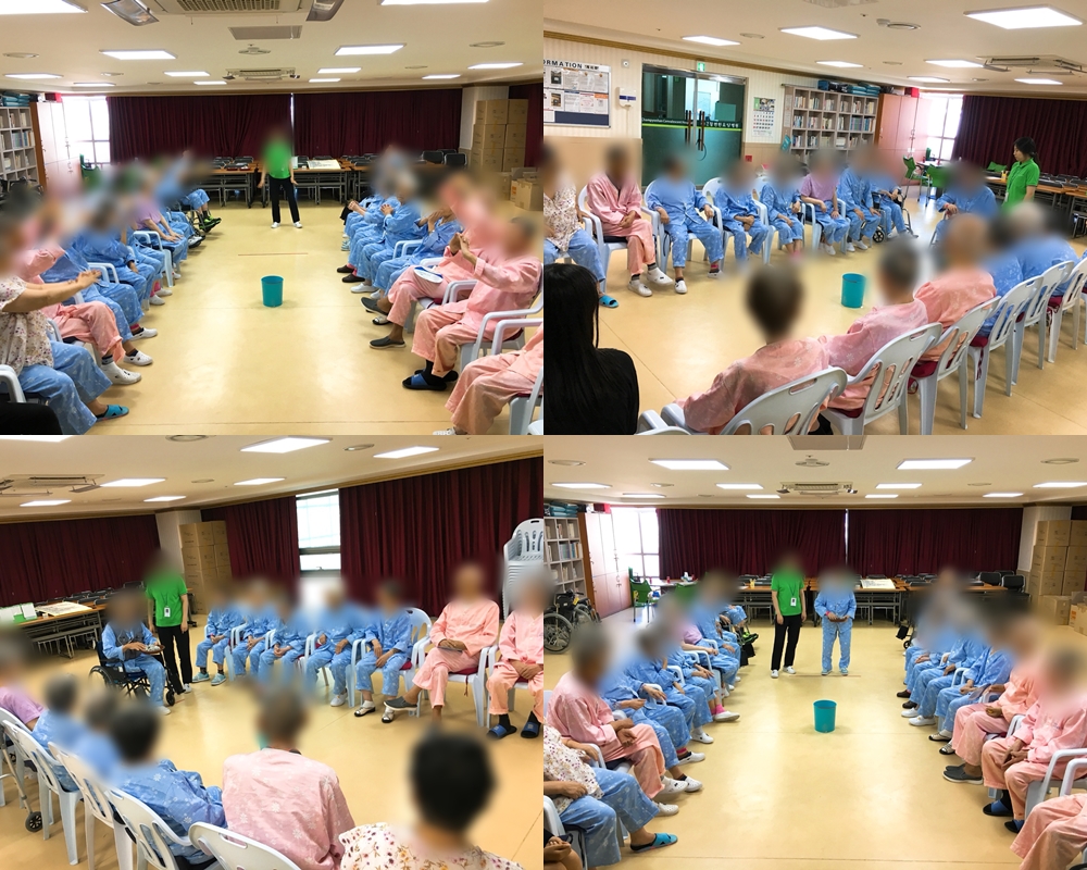 치료레크리에이션 - 신문지 공 넣기 본문 2018년 8월 1일 (수) 오늘은 치료레크리에이션으로 신문지 공 넣기를 하였습니다. 대체적으로 높은 점수를 많이 받으셔서 더욱더 활기차게 게임에 임하였습니다~~^^ 이전글 목록 다음글
