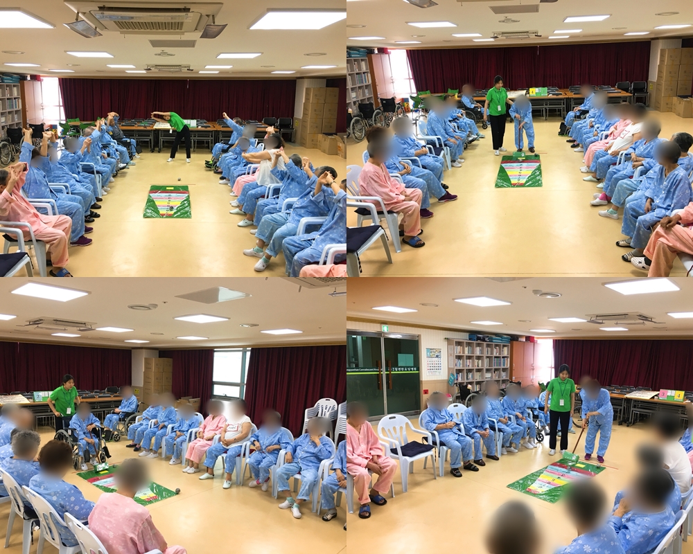 치료레크리레이션 - 게이트볼 본문 2018년 6월 25일 (월) 오늘은 치료레크리에이션으로 게이트볼을 하였습니다. 어르신들 모두 높은 집중력을 보여주셨고 다들 호탕하게 웃으시며 재밌게 게임에 참여하셨습니다~~^^ 이전글 목록 다음글