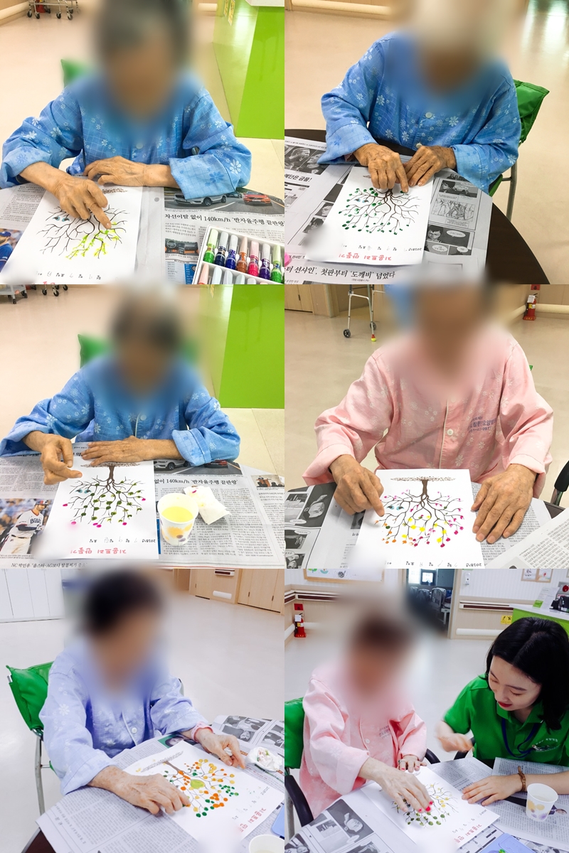 미술치료 - 지문트리 만들기 본문 2018년 7월 9일 (월) 오늘은 미술치료로 지문트리 만들기를 하였습니다. 나무를 알록달록 예쁜 물감들로 풍성하고 각자 개성에 맞게 꾸미셨습니다~~^^ 이전글 목록 다음글