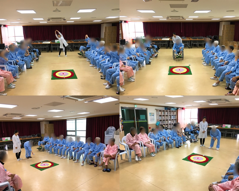 치료레크리에이션 - 과녁 맞추기 본문 2018년 6월 8일 (금) 오늘은 치료레크리에이션으로 과녁 맞추기를 하였습니다. 어르신들께서는 높은 점수를 얻길 원하셨지만 마음처럼 잘 되지 않아 안타까워 하셨습니다. 그렇지만 낮은 점수를 받아도 게임에 끝까지 최선을 다해 참여하였습니다~~^^ 이전글 목록 다음글