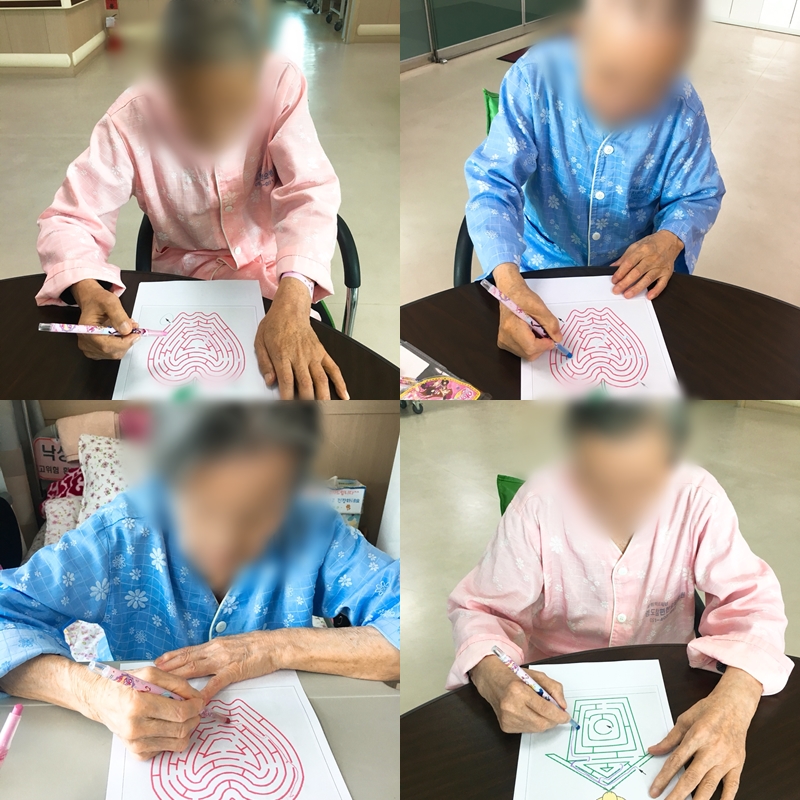 인지치료 - 미로찾기 본문 2018년 6월 25일 (월) 오늘은 인지치료로 미로찾기를 하였습니다. 쉽게 잘 찾으시는 어르신들도 계셨고 오랫동안의 고민 끝에 찾으시는 어르신들도 계셨지만, 모두들 열심히 집중하는 모습이 멋있었습니다~~^^ 이전글 목록 다음글
