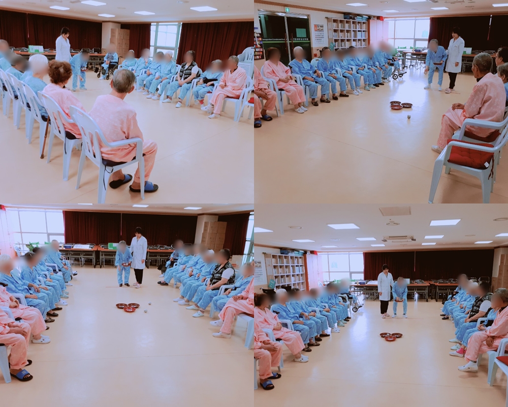 치료레크리에이션 - 신문지 공 던지기 본문 2018년 5월 28일 (월) 오늘은 치료레크리에이션으로 신문지 공 던지기를 하였습니다. 신문지 공이 마음먹은 대로 잘 들어가지 않고 이리저리 엉뚱한 방향으로 던져지자 당황하셨지만 호탕하게 웃음 지으시며 어르신들께서 모두 즐겁게 게임에 참여하셨습니다~ 이전글 목록 다음글