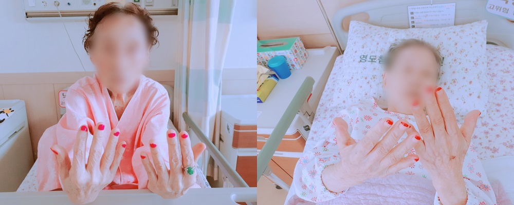 미용프로그램 - 손·얼굴 마사지 본문 2018년 6월 5일 (화) 오늘은 미용프로그램으로 손·얼굴 마사지를 하였습니다. 어르신들께서 오랜만에 마사지를 받는 것 같다고 하시며 좋아하셨고, 예쁘게 매니큐어로 손톱까지 꾸미자 연신 미소를 지으시며 즐거워하셨습니다~^^ 이전글 목록 다음글