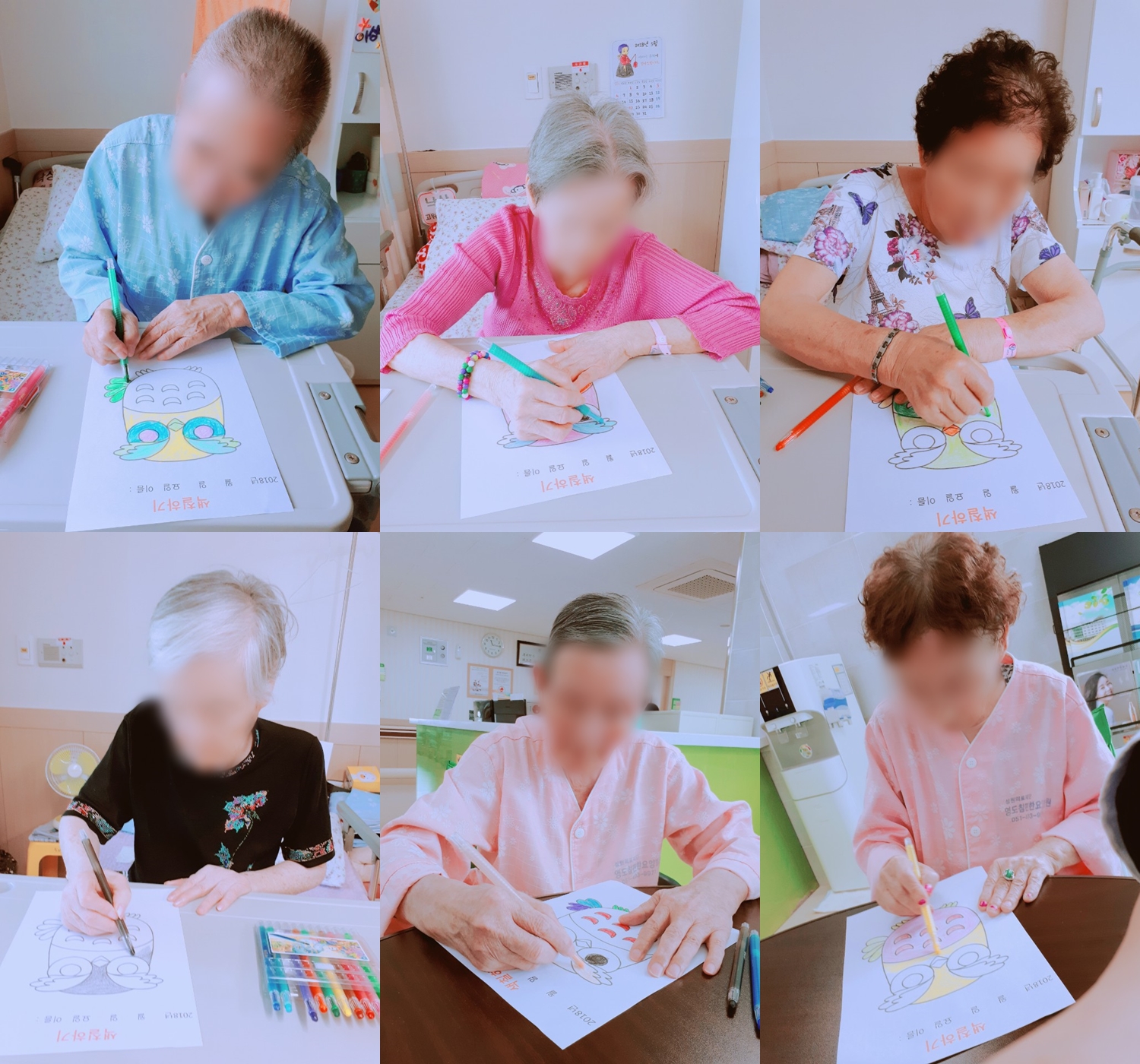 미술치료 - 색칠하기 본문 2018년 5월 25일 (금) 오전에는 4,5병동 어르신들과 함께 미술치료로 색칠하기를 하였습니다. 처음에는 부엉이 그림을 보고 무엇인지 알아채지 못하시다가 진행자가 부엉이라고 알려드리자 알록달록하게 색칠하면 더 예쁠 것 같다고 하시며 예쁜 부엉이로 꾸미려고 하셨습니다^^ 이전글 목록 다음글