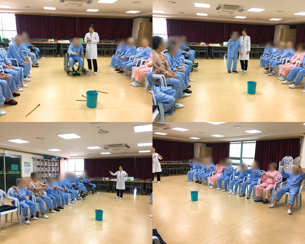 치료레크리에이션 - 투호 본문 2018년 6월 7일 (목) 오늘은 치료레크리에이션으로 투호를 하였습니다. 참여자들은 대체적으로 투호를 1~2개씩은 넣었으며 5개 전부를 바구니에 넣는 참여자도 있었습니다. 참여자들은 모두 즐거워하며 최선을 다하였습니다~~^^ 이전글 목록 다음글