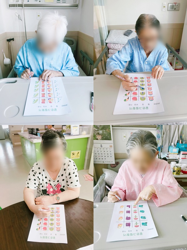 인지치료 - 같은 그림 찾기 본문 2018년 5월 11일 (금) 오늘은 인지치료로 같은 그림 찾기를 하였습니다. 쉬운 난이도의 자료에서는 정답을 척척 맞추며 스스로 뿌듯한 모습을 보이다가도 난이도가 어려워지자 손가락을 짚어가며 그림을 세세히 비교하는 모습을 보이셨습니다^^ 이전글 목록 다음글