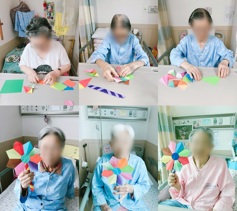 인지치료 - 종이접기 본문 2018년 5월 18일 (금) 오늘은 인지치료로 종이접기를 하였습니다. 금일 오전 4,5병동 참여자들과 함께 종이 접기를 진행 후 만족도가 높아, 오후 3병동 환자분들과 함께 종이 접기를 실시하였습니다. 원하는 색깔의 색종이로 천천히 종이를 접고, 붙여가며 완성한 꽃 모양을 무척 마음에 들어하셨습니다^^ 이전글 목록 다음글