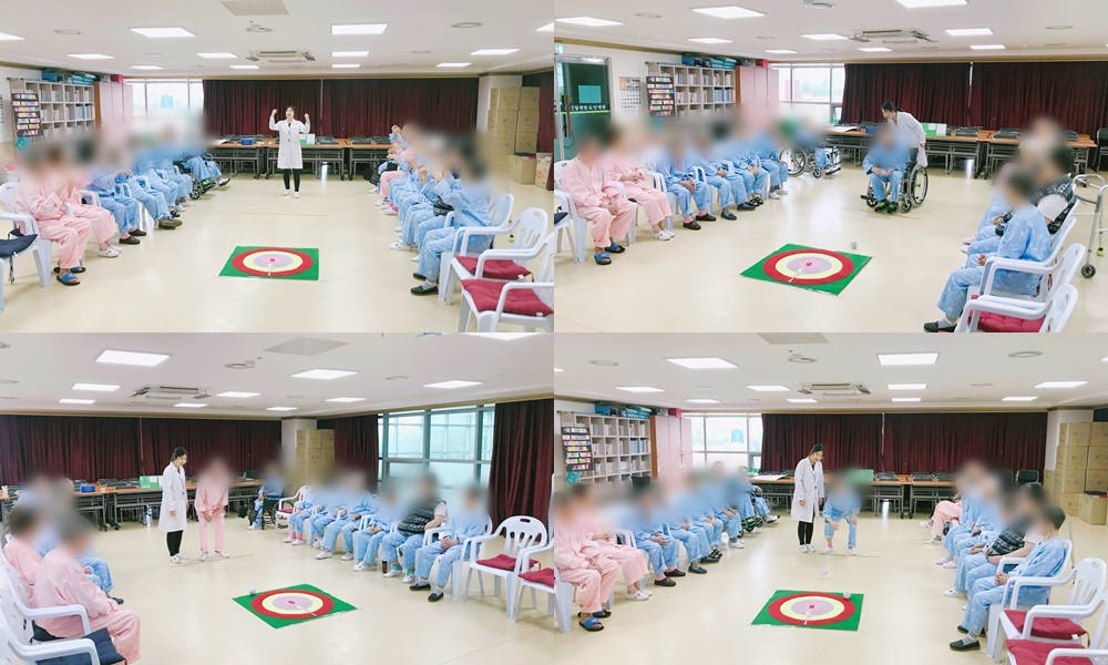 치료레크리에이션 - 과녁 맞추기 본문 2018년 5월 7일 (월) 오늘은 치료레크리에이션으로 과녁 맞추기를 하였습니다. 본격적인 게임이 시작하기도 전 높은 점수를 받지 못 할까 걱정하는 모습을 보였지만, 막상 게임이 시작 되자 서로 응원을 해주며 게임을 즐기셨습니다^^ 이전글 목록 다음글