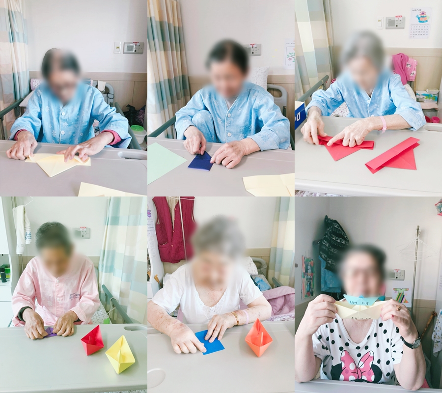 인지치료 - 종이 접기 본문 2018년 4월 19일 (목) 오늘은 인지치료로 종이 접기를 하였습니다. 색종이를 접어 배가 되자 참여자들은 "통통배다 통통배~" 라고 이야기 하며, 노래를 흥얼거리는 등의 모습을 보였습니다~ 이전글 목록 다음글