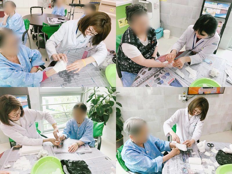 2018년 4월 24일 (화) 오늘 미술치료로 석고 본뜨기를 하였습니다.