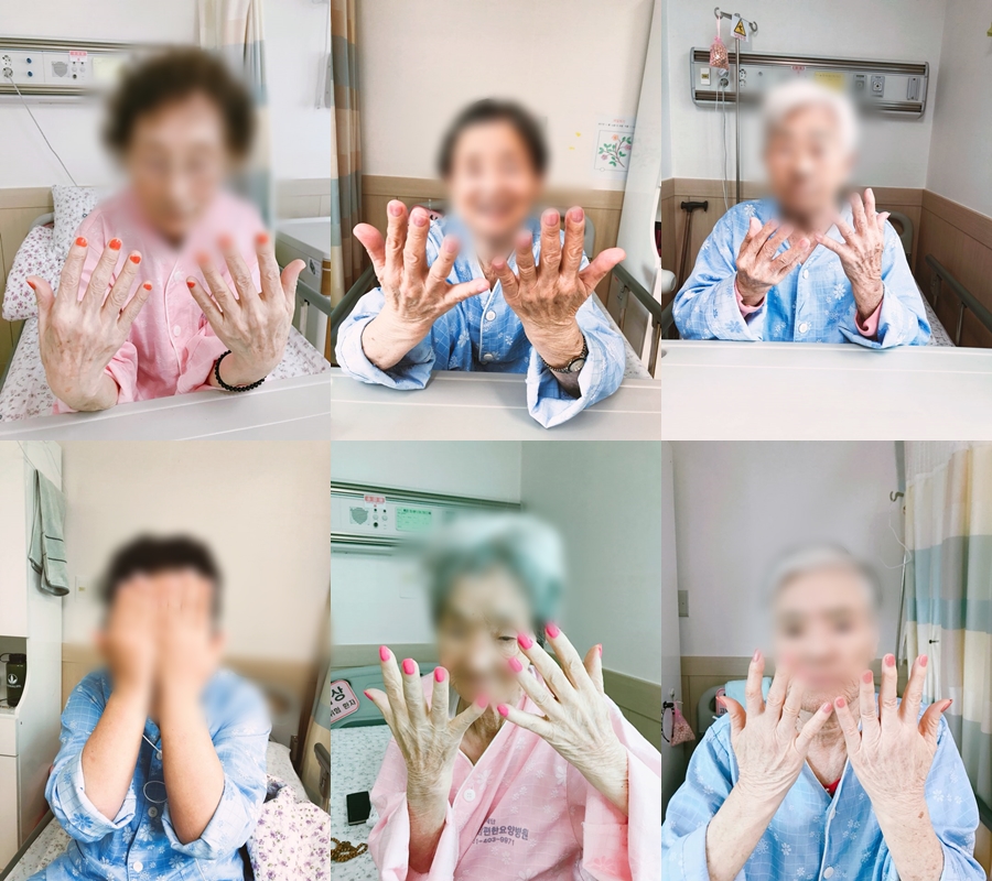 미용프로그램 - 손·얼굴 마사지 본문 2018년 4월 4일 (수) 오늘은 미용프로그램으로 손·얼굴 마사지를 하였습니다. 2주 전 연한색을 발랐던 참여자들은 진한색을, 진한색을 발랐던 참여자들은 연한색을 고르며 프로그램에 즐겁게 참여하는 모습을 볼 수 있었습니다~ 이전글 목록 다음글