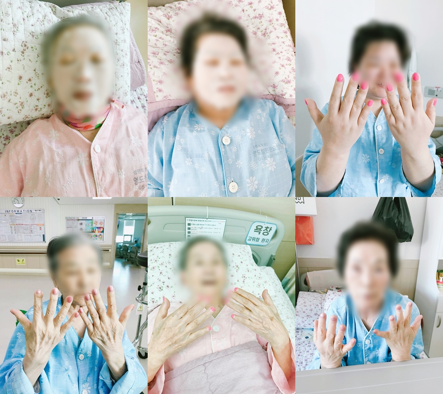 미용프로그램 - 손·얼굴 마사지 본문 2018년 3월 23일 (금) 오늘은 미용프로그램으로 손·얼굴 마사지를 하였습니다. 매니큐어 향이 싫어서 참여를 거부했던 분들도 자신의 손을 내어주며 참여를 했고, 서로의 색을 권유하는 등의 모습을 보이며 즐겁게 마무리 되었습니다~ 이전글 목록 다음글