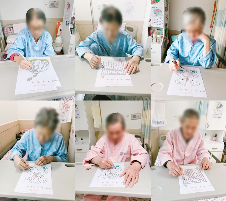 인지치료 - 미로찾기 본문 2018년 3월 5일 (월) 오늘은 인지치료로 미로찾기를 하였습니다. 평소보다 빠른 속도로 미로를 찾으셨으며 한 장이 끝날 때 마다 박수를 치시거나 서로 자랑을 하는 등의 모습을 보이며 즐겁게 마무리 되었습니다~! 이전글 목록 다음글