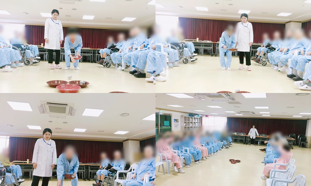 2017년 11월 27일 (월) 오늘은 치료레크리에이션으로 신문지 공 던지기를 하였습니다.