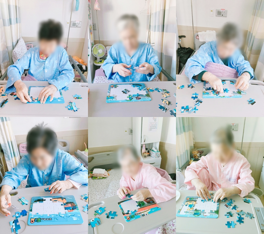 인지치료 - 퍼즐 본문 2017년 11월 14일 (화) 오늘은 인지치료로 퍼즐을 하였습니다. 다양한 난이도의 퍼즐을 보고 제일 어려운 것을 달라며 자신감 있는 모습을 보였습니다. 다소 어려운 듯 혼란스러운 표정을 짓기도 하셨지만 포기하지 않고 끝까지 마무리 하셨습니다! 이전글 목록 다음글