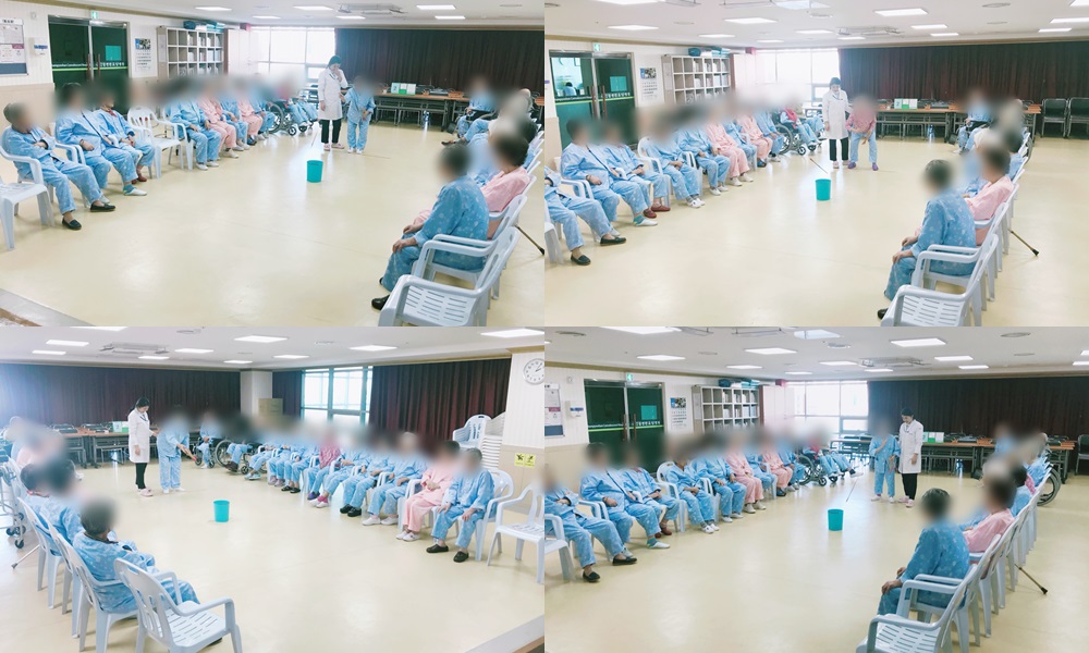 치료레크리에이션 - 투호 본문 2017년 11월 16일 (목) 오늘은 치료레크리에이션으로 투호를 하였습니다. 다른 날에 비해 화살이 잘 들어가지 않는다며 속상해 하면서도, 서로 응응원 과 조언을 해주며 즐거워 하셨고 예상외의 참여자가 성공을 시키면 토끼눈을 뜨며 놀란 듯 박수를 치기도 하셨습니다^^ 이전글 목록 다음글