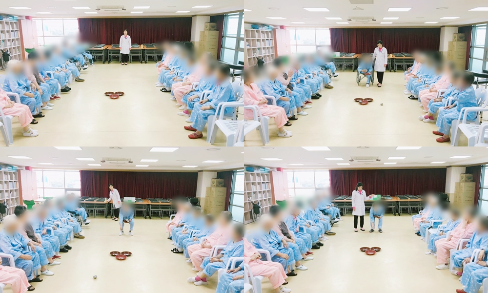 치료레크리에이션 - 신문지 공 던지기 본문 2017년 10월 16일 (월) 오늘은 치료레크리에이션으로 신문지 공 던지기를 하였습니다. 갑자기 쌀쌀해진 날씨에 추워하시기도 했지만 공을 던질 때는 집중을 곧 잘 하셨으며, 흥얼거리는 콧노래 소리와 함께 즐겁게 마무리 했습니다! 이전글 목록 다음글