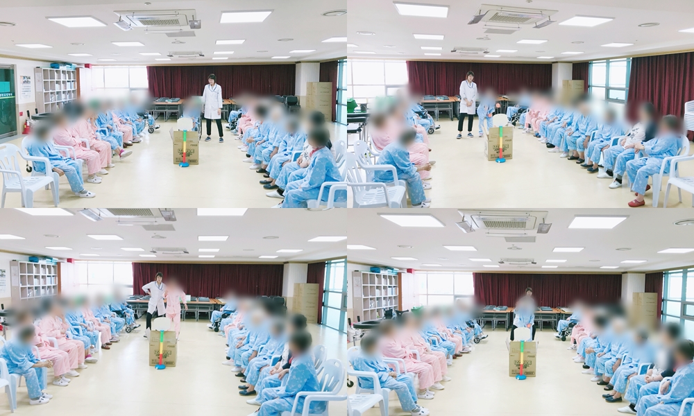치료레크리에이션 - 농구 본문 2017년 10월 19일 (목) 오늘은 치료레크리에이션으로 농구를 하였습니다. 잘 들어가지 않는 공을 보며 인상을 찌푸리고 안타까운 감정을 드러내기도 하셨지만, "퐁당들어가보자" 라고 말씀하시기도 하며 유쾌한 모습으로 마무리 하였습니다! 이전글 목록 다음글