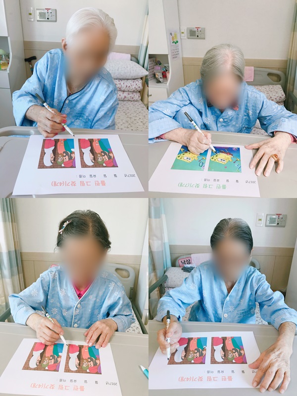 인지치료 - 틀린 그림 찾기 본문 2017년 8월 4일 (금) 오늘은 인지치료로 틀린 그림 찾기를 하였습니다. 색깔과 모양이 다름에도 불구하고 다 같은 그림이라고 생각을 하셨는지, 그림 도안을 한참을 바라보신 후에야 틀린 그림을 찾을 수가 있으셨습니다^^ 이전글 목록 다음글