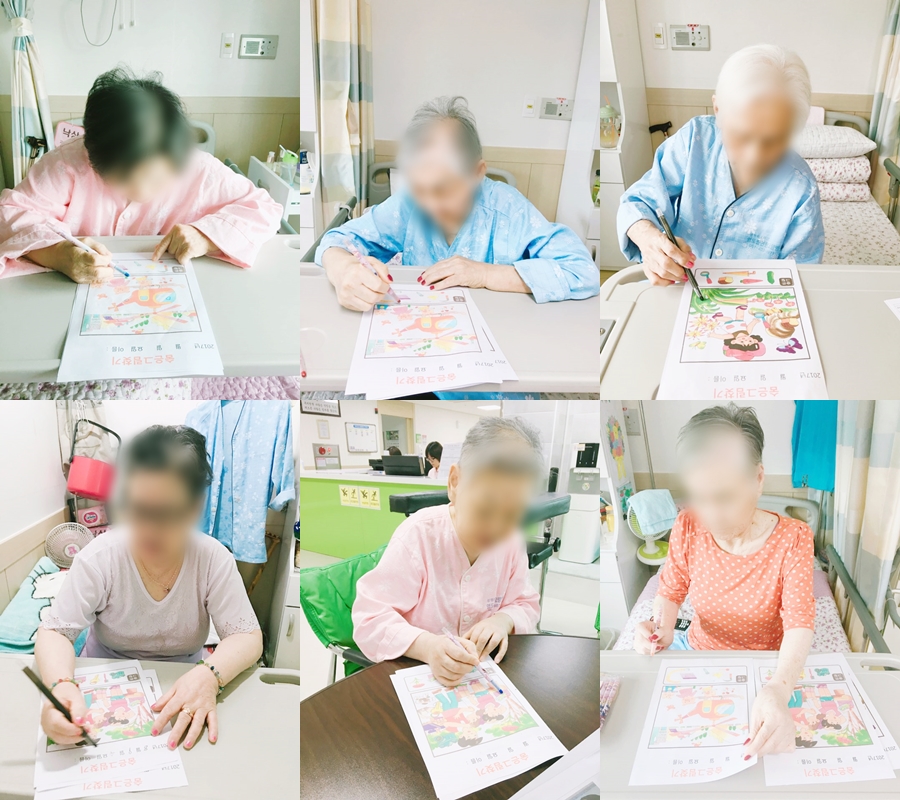 인지치료 - 숨은 그림 찾기 본문 2017년 8월 9일 (수) 오늘은 인지치료로 숨은 그림 찾기를 하였습니다. 눈이 침침해서 아무리 봐도 모르겠다 라고 말씀하시면서도 종이를 뚫어지게 보시며 집중하셨습니다. 진행자의 힌트를 듣고 정답을 맞추며 졍다운 분위기 속에서 마무리했습니다^.^ 이전글 목록 다음글