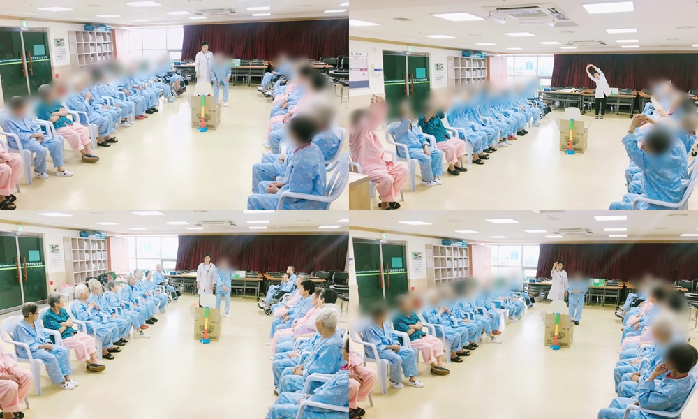 치료레크리에이션 - 농구 본문 2017년 8월 21일 (월) 오늘은 치료레크리에이션으로 농구를 하였습니다. 공이 잘 들어가지 않으시는지 "안돼 안돼" 를 말씀하시며 시무룩한 표정을 보이시기도 했으나, 서로를 격려하고 높은 점수가 나오면 박수를 치는 등 밝은 분위기에서 마무리 되었습니다 ~.~ 이전글 목록 다음글