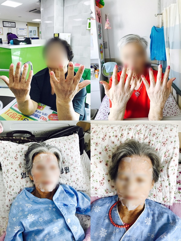 미용프로그램 - 손·얼굴 마사지 본문 2017년 7월 20일 (목) 오늘은 미용프로그램으로 손·얼굴 마사지를 하였습니다. 환자분들이 직접 고른 색깔의 매니큐어를 손에 발라드리자"젊어진거 같다"며 좋아하셨고, 팩을 한 뒤 "시집을 다시 가야겠다'는 농담을 하시면서 즐거워하셨습니다^^ 이전글 목록 다음글