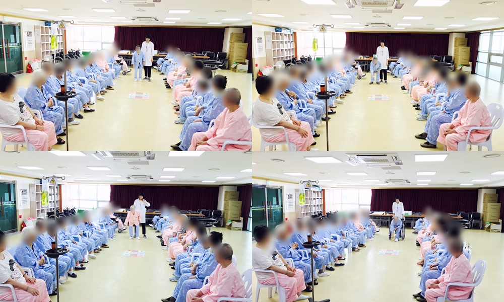 치료레크리에이션 - 오자미 던지기 본문 2017년 7월 20일 (목) 오늘은 치료레크리에이션으로 오자미 던지기를 하였습니다. 오늘은 가장 많은 인원이 참여하여 강당이 꽉 찬 느낌을 받았습니다. 처음 하시는 분들을 위해 새롭게 설명을 하고 서로를 격려하는 분위기 속에서 마무리 되었습니다. 이전글 목록 다음글