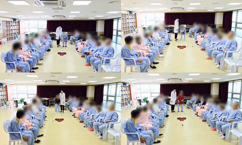 치료레크리에이션 - 신문지 공 던지기 본문 2017년 7월 4일 (화) 오늘은 치료레크리에이션으로 신문지 공 던지기를 하였습니다. 공이 엉뚱한 곳으로 날아가는 듯 하다 바구니 속으로 들어가는 것을 보시고는 신기한듯 바라보기도 하셨고, 오늘은 생각처럼 공이 들아가지 않는다며 많이 아쉬워하는 모습을 보이기도 하셨습니다. 이전글 목록 다음글