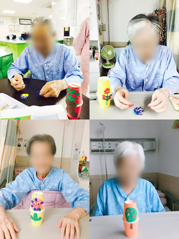 미술치료 - 저금통 만들기 본문 2017년 7월 7일 (금) 오늘은 미술치료로 저금통 만들기를 하였습니다. 클레이 도안을 보고 따라 만들기도 하셨고, 자신이 생각한 모양으로 만든 클레이 작품으로 저금통을 예쁘게 꾸미셨습니다. 완성한 저금통을 보시고는 "돈을 많이 모아 맛있는것을 사먹어야겠다"며 밝은 미소를 보이기도 하셨습니다^^ 이전글 목록 다음글
