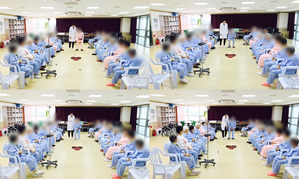 치료레크리에이션 - 신문지 공 던지기 본문 2017년 6월 20일 (화) 오늘은 치료레크리에이션으로 신문지 공 던지기를 하였습니다. 바구니 안에 들어갔다 빙그르르 돌다 튕겨져 나오는 공을 보시고는 우습다며 박수를 치며 좋아하셨고, 금일 최고점을 받으시는 참여자분이 계시자 "대단하다"며 칭찬해 주며 즐거워하셨습니다^^ 이전글 목록 다음글