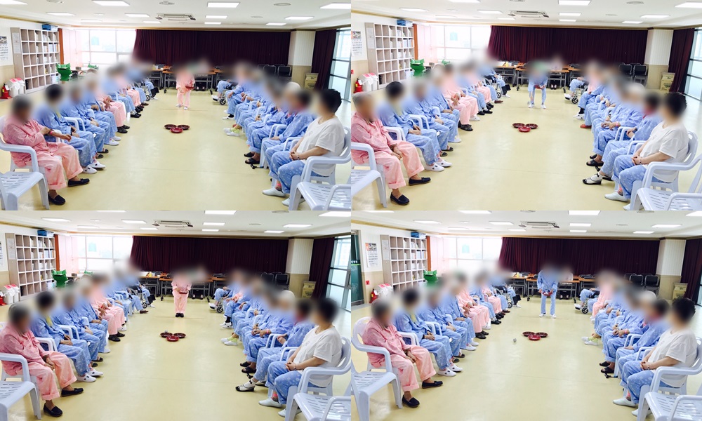치료레크리에이션 - 신문지 공 던지기 본문 2017년 5월 24일 (수) 오늘은 치료레크리에이션으로 신문지 공 던지기를 하였습니다. 바구니에 들어갔다 튕겨져 나오는 공을 보시고는 어이없다는 표정을 짓기도 하셨고, 보호자분이 나눠주신 사탕을 맛있게 드시며 즐겁게 게임에 참여하기도 하셨습니다^^ 이전글 목록 다음글