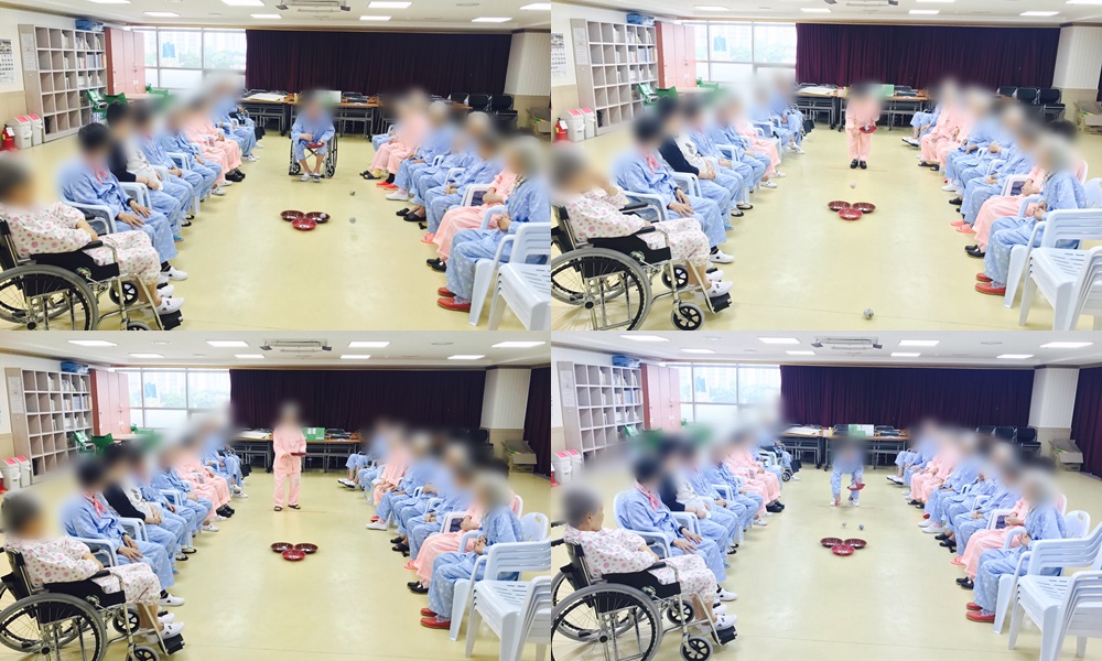치료레크리에이션 - 신문지 공 던지기 본문 2017년 5월 12일 (금) 오늘은 치료레크리에이션으로 신문지 공 던지기를 하였습니다. 바구니가 낮아 들어갔던 공이 다시 튕겨져 나온다며 점수를 받지 못하는 것을 많이 아쉬워하셨지만, 서로에게 조언을 해주시면서 즐겁게 게임을 끝내셨습니다^^ 이전글 목록 다음글